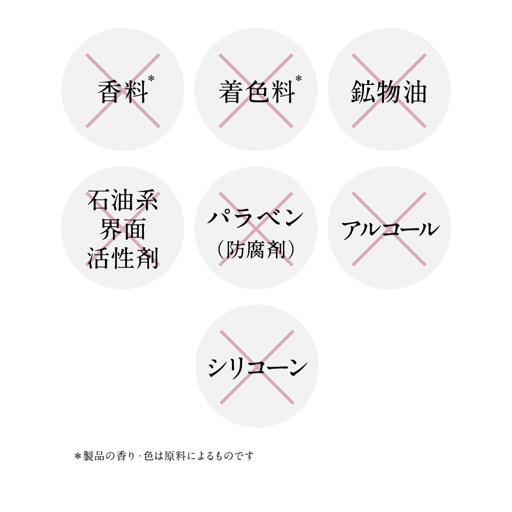 肌のことを考えた7つの無添加。余分なものを含まないシンプル処方で、必要な成分がダイレクトに届きます*²。