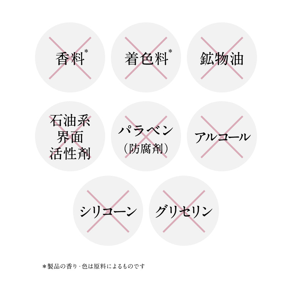 肌のことを考えた8つの無添加。余分なものを含まないシンプル処方で、必要な成分がダイレクトに届きます*。