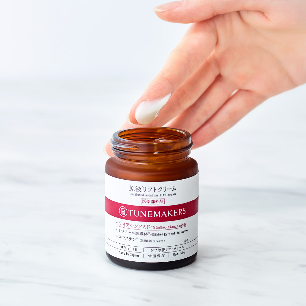 *チューンメーカーズ「セラミド(コメヌカスフィンゴ糖脂質(保湿成分))」「アルガンオイル(アルガニアスピノサ核油(保湿成分))」「ヒアルロン酸(保湿成分)」「スクワラン(保湿成分)」「コラーゲン(保湿成分)」 *1濃厚なテクスチャーのことです *2潤いにより肌にハリを与えます