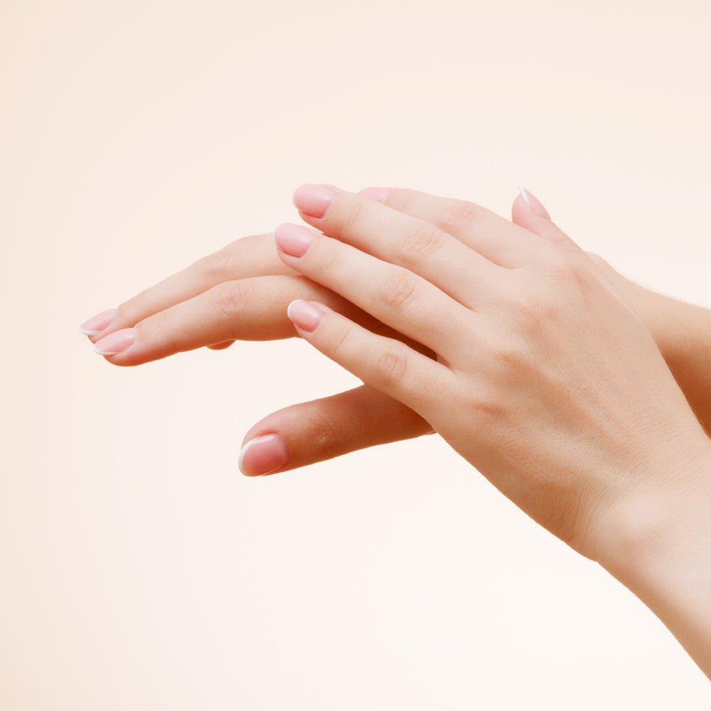 適量を手にとり、手全体にマッサージするようになじませます。爪の周りは円を描くようになじませます。